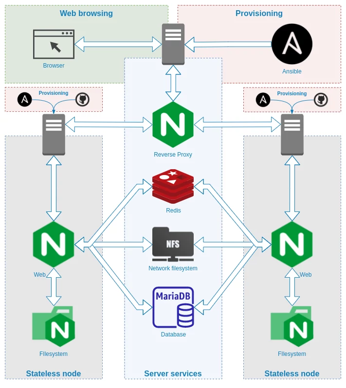 These VMs deploy stateless PrestaShop nodes (servers) with nginx and php as follow (by ansible):